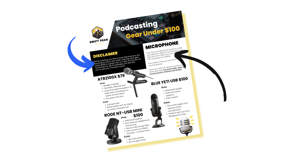 Let’s kick things off with the heart of any podcast setup – the microphone. I use the Shure MV7 microphone, and it’s been a fantastic choice. While the legendary Shure SM7B microphone is a favorite among many podcasters, the MV7 gets you more than half way there. It comes in both XLR and USB versions, catering to different needs. If you’re on a budget, don’t worry; I’ve got some great microphone recommendations for under $100 in a downloadable podcast quick start guide.
